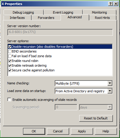 Check the "Disable recursion (also disables forwarders)" box, as shown below.