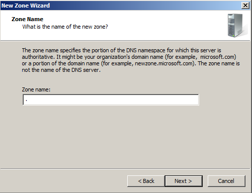 In the "Zone Type" page, accept the default selection of "Primary zone" and click Next.