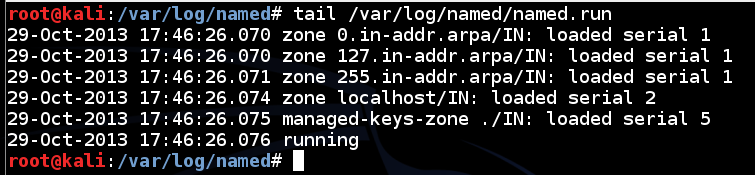 If bind won't start, open another Terminal window and execute this command.Then, in another Terminal window, execute this command:tail -f /var/log/daemon.log