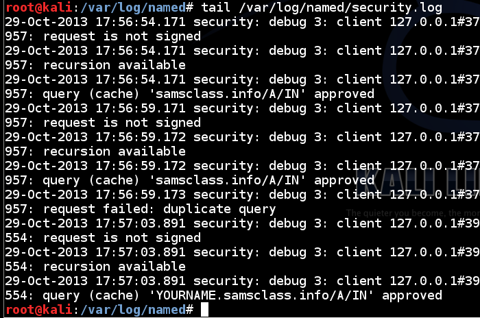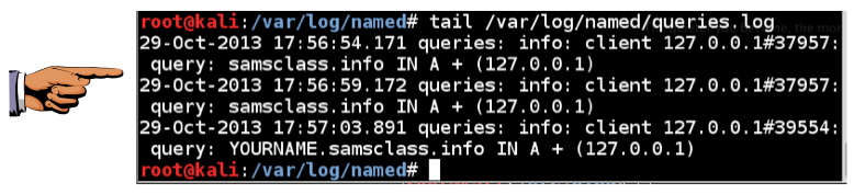 dig @127.0.0.1 YOURNAME.samsclass.info