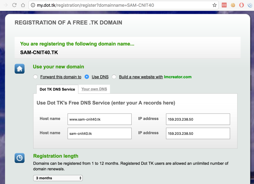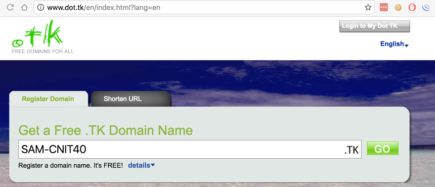 Enter your domain name, which should be something like YOURNAME-CNIT40.TK and click Search.