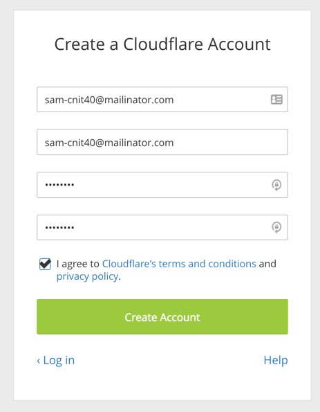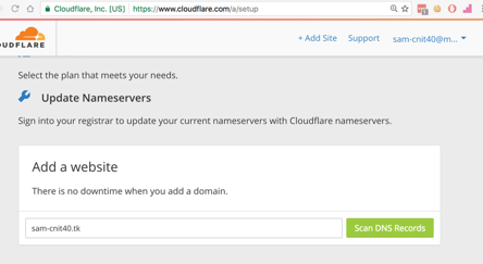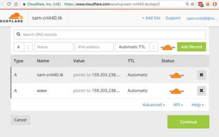 Click the "Change Nameservers" button. Return to the Cloudflare page and click the green Continue button.