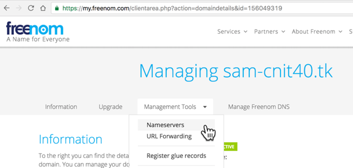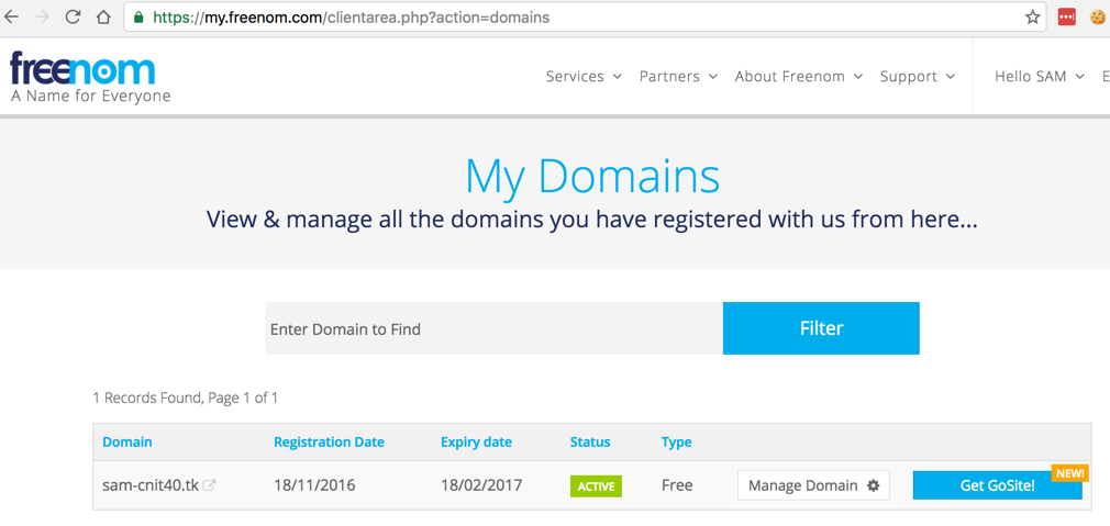 Enter your domain name, which should be something like YOURNAME-CNIT40.TK in the box and click the Search button.