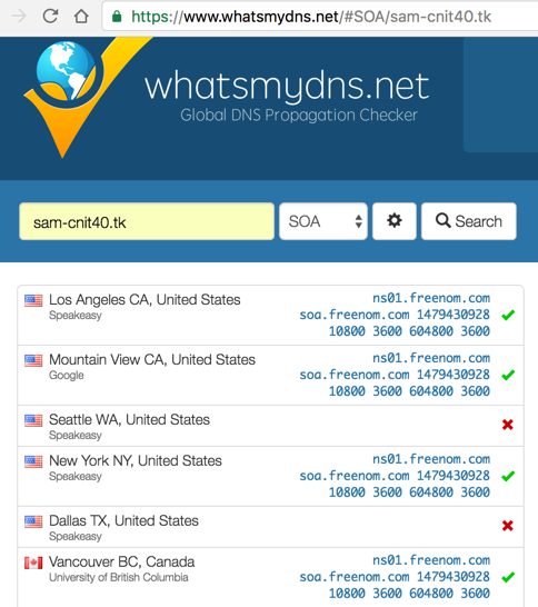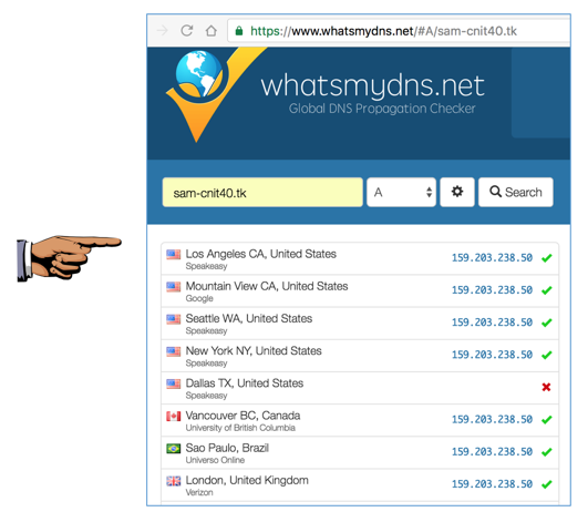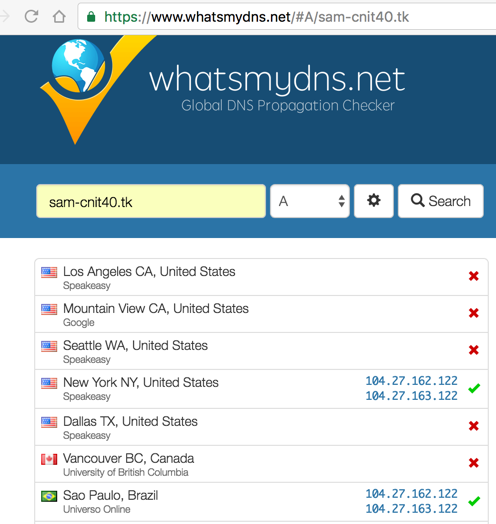 You should see that some of the global servers now know about your domain, but probably not all of them, as shown below.