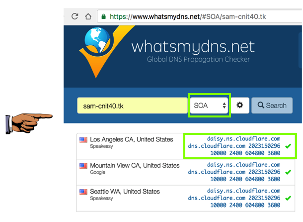 You should see that your SOA servers are now cloudflare.com servers, as shown below.