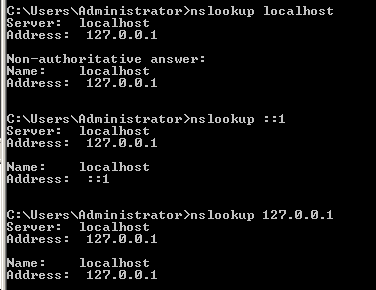 The four records above permit forward and reverse name resolution for both the IPv4 loopback address of 127.0.0.1 and the IPv6 loopback address of ::1, which can also be written 0000:0000:0000:0000:0000:0000:0000:0001.