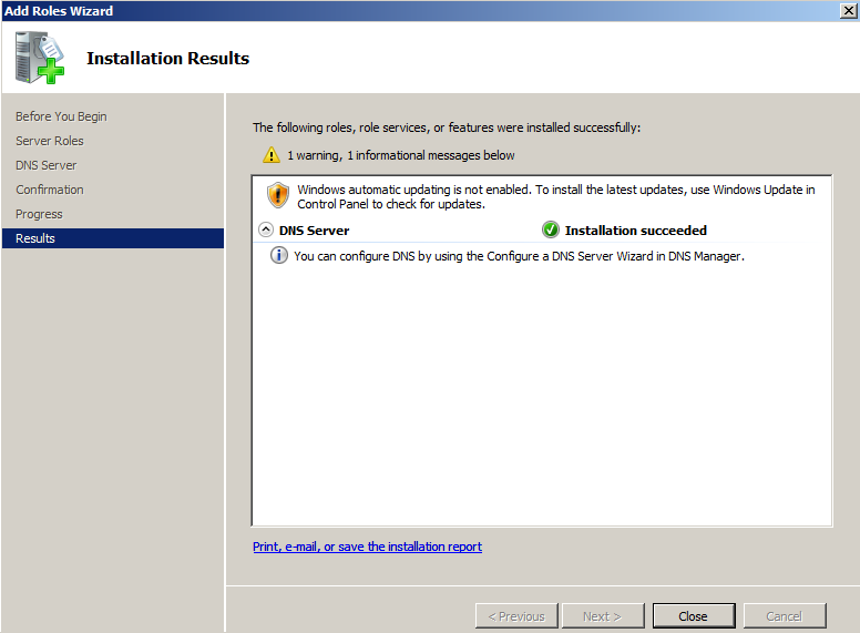 The "Installation Results" screen should show a green check-box with the message "Installation succeeded", as shown below: