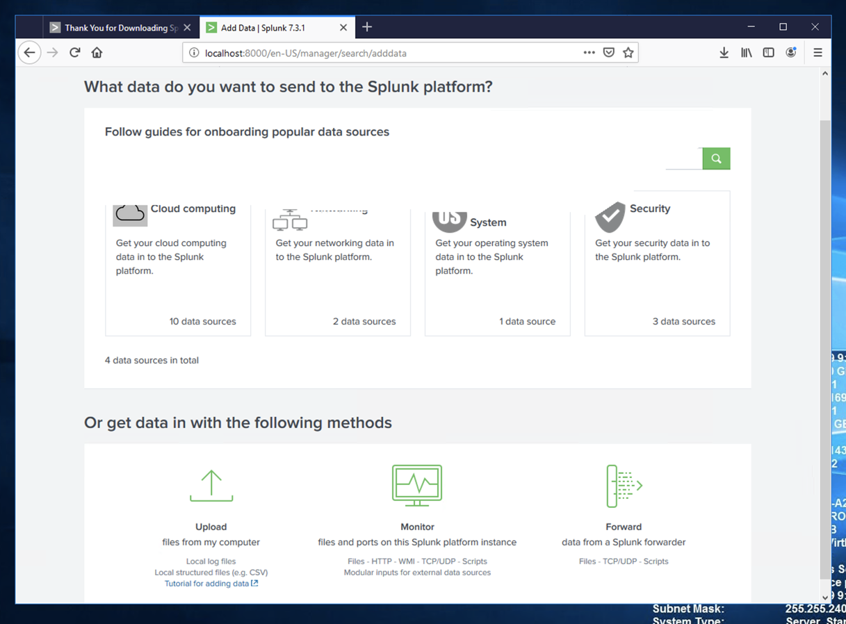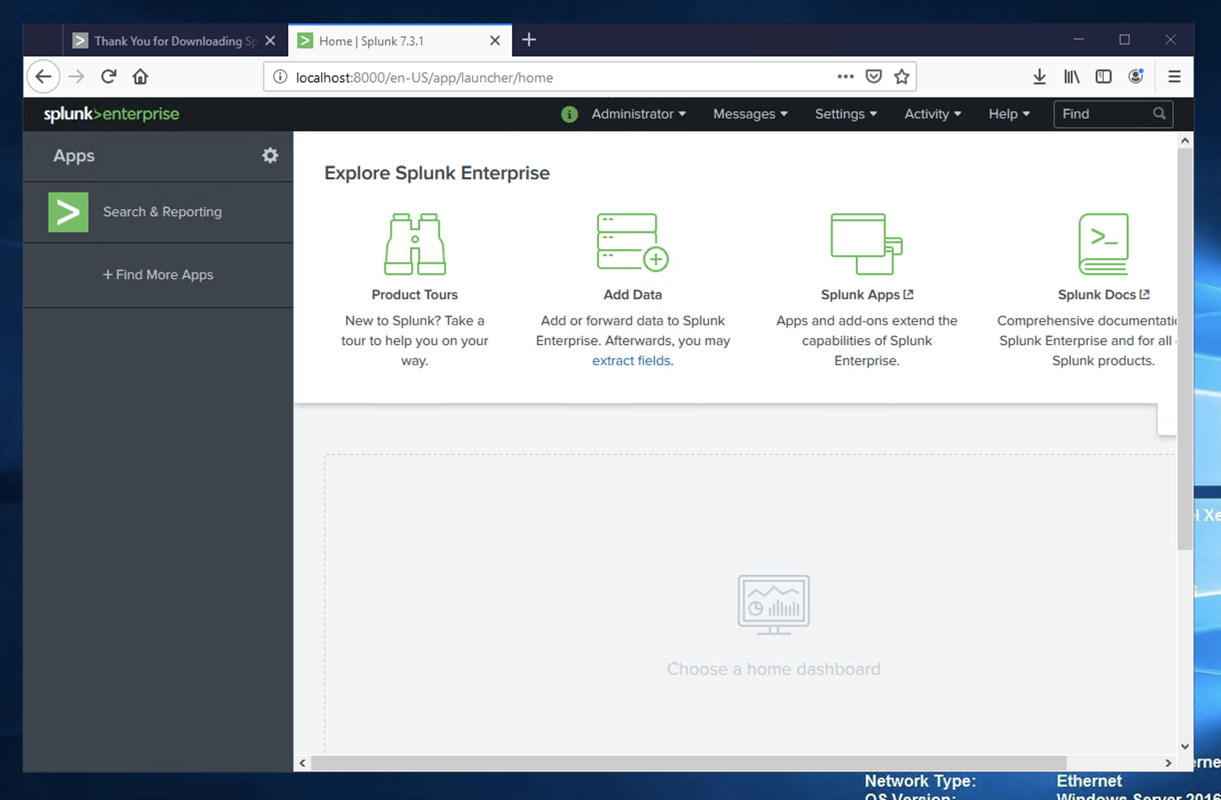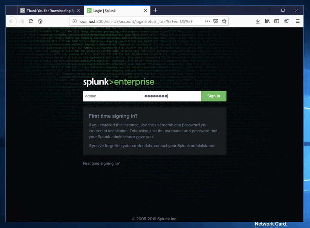 If a "Help us improve Splunk software" box pops up, click Skip.
