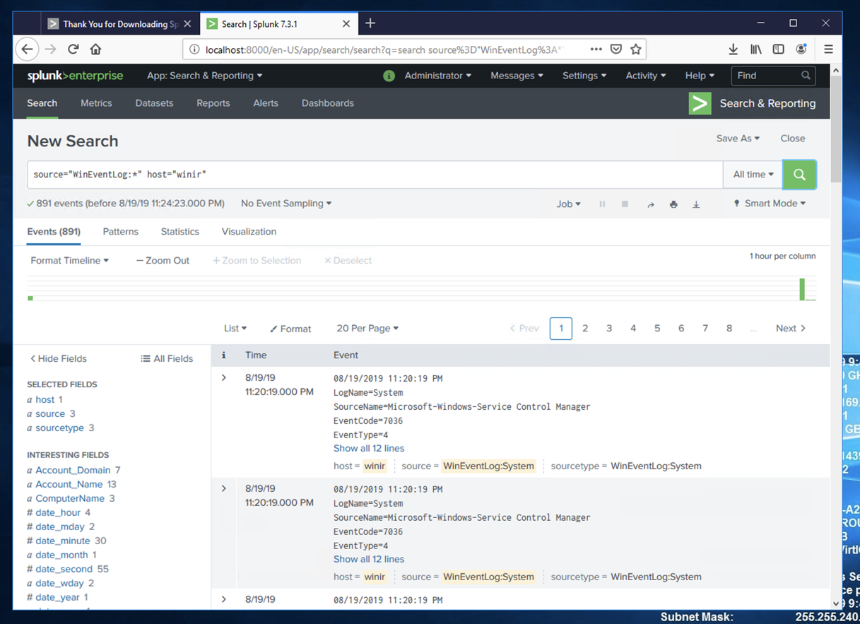 Splunk shows some log entries from your system, as shown below.