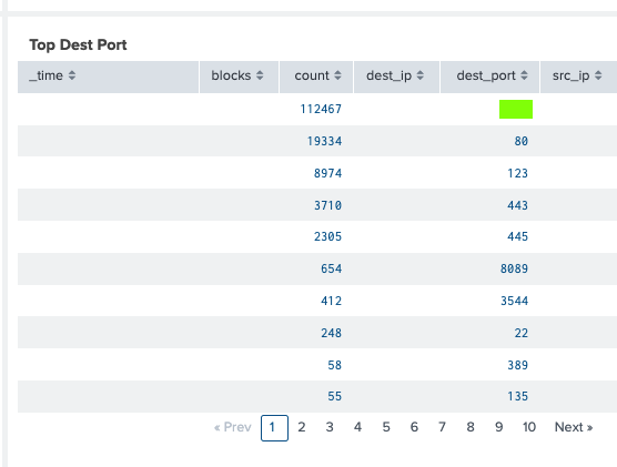 In the "Basic Scanning"example of Collection, run the Demo Data. Find the top destination port, as shown below.