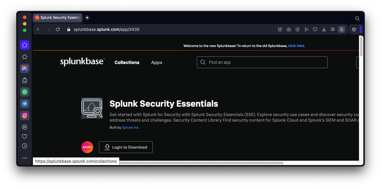 If you haven't already logged in with your Splunk account, click the "Login to download" button, as shown below, and log in.
