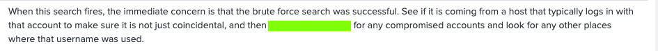 Read the information on this page and find the recommended action for an account which was successfully brute-forced.The flag is covered by a green box in the image below.