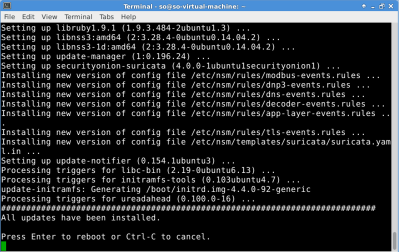 When you see the message "All updates have been installed", as shown below, press Enter.