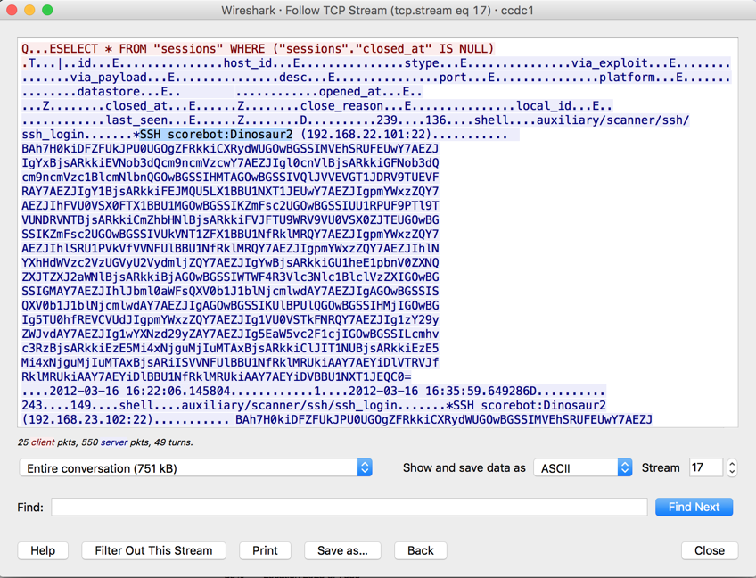 In the "Wireshark - Follow TCP Stream" box, click the Close button.