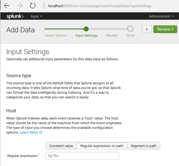 In the "Input Settings" page, in the center, click "Regular expression on path".