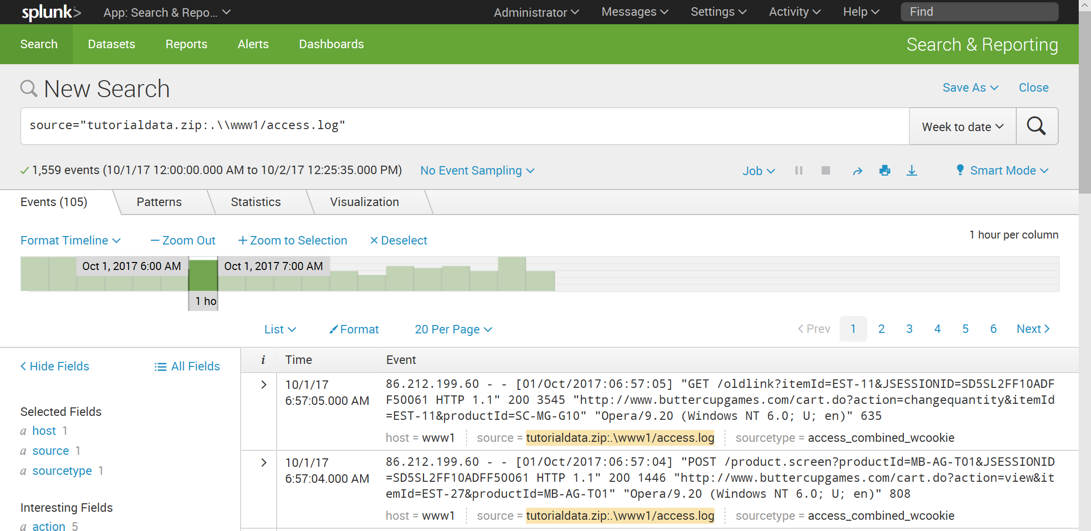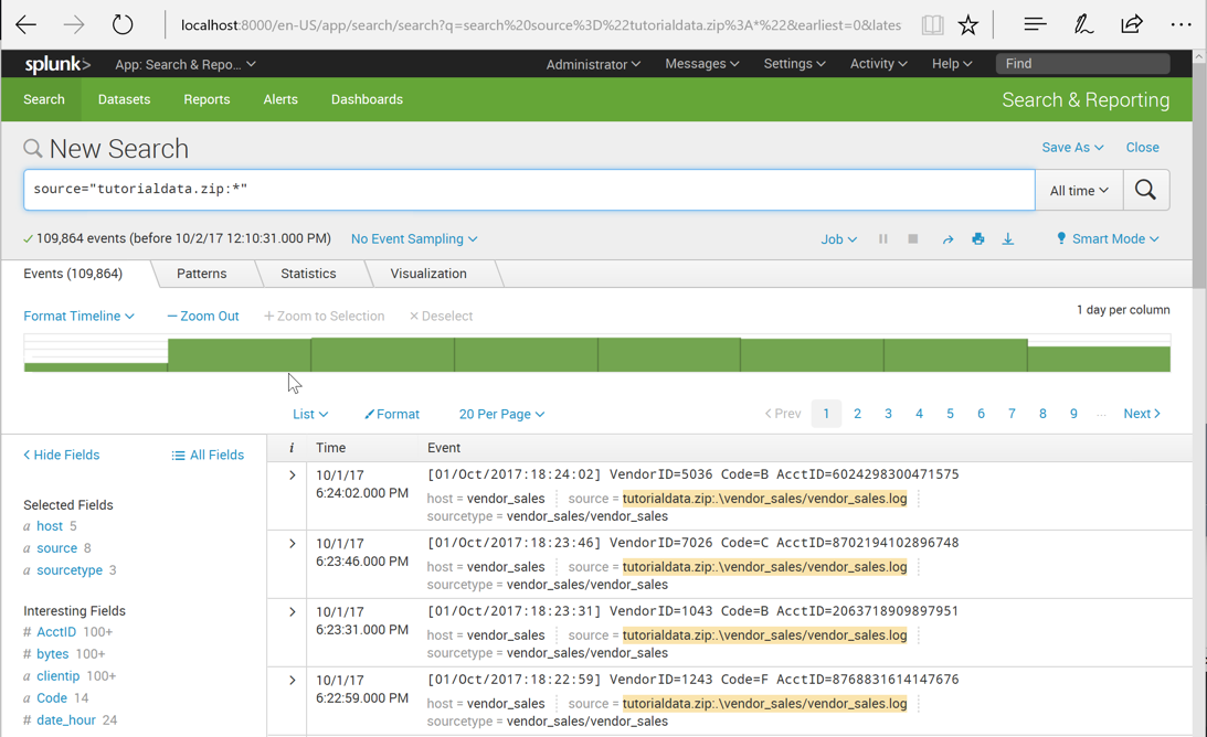 A new search runs. The events that match the search appear in the lower portion of the screen, as shown below.