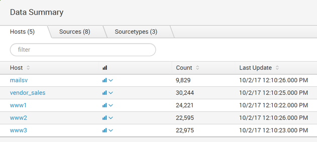 The Hosts tab shows five hosts in this dataset, as shown below.