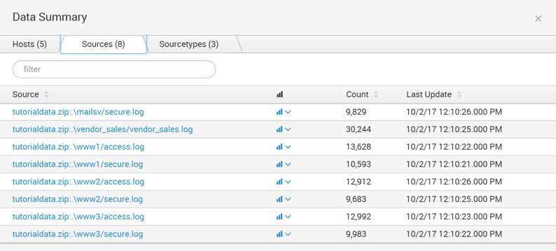 Click the Sources tab to see the eight sources shown below, all of which are log files.