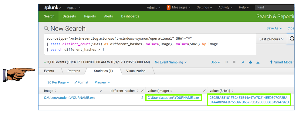 It finds the file with your name on it, with two different SHA1 values, as shown below.