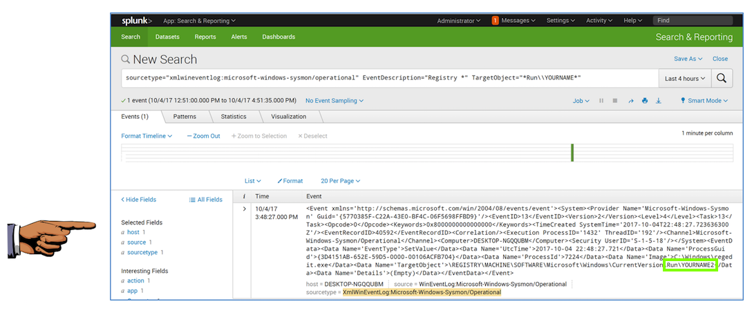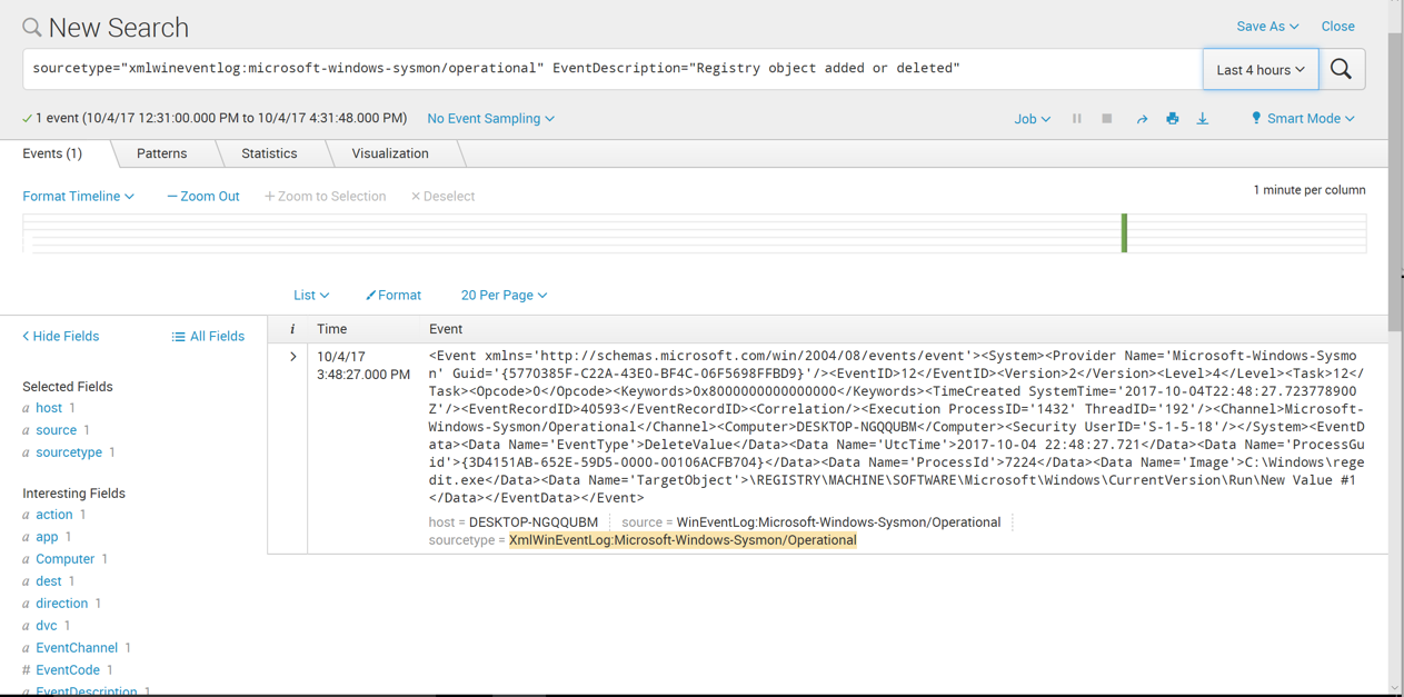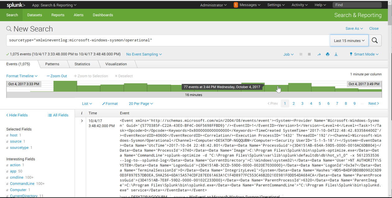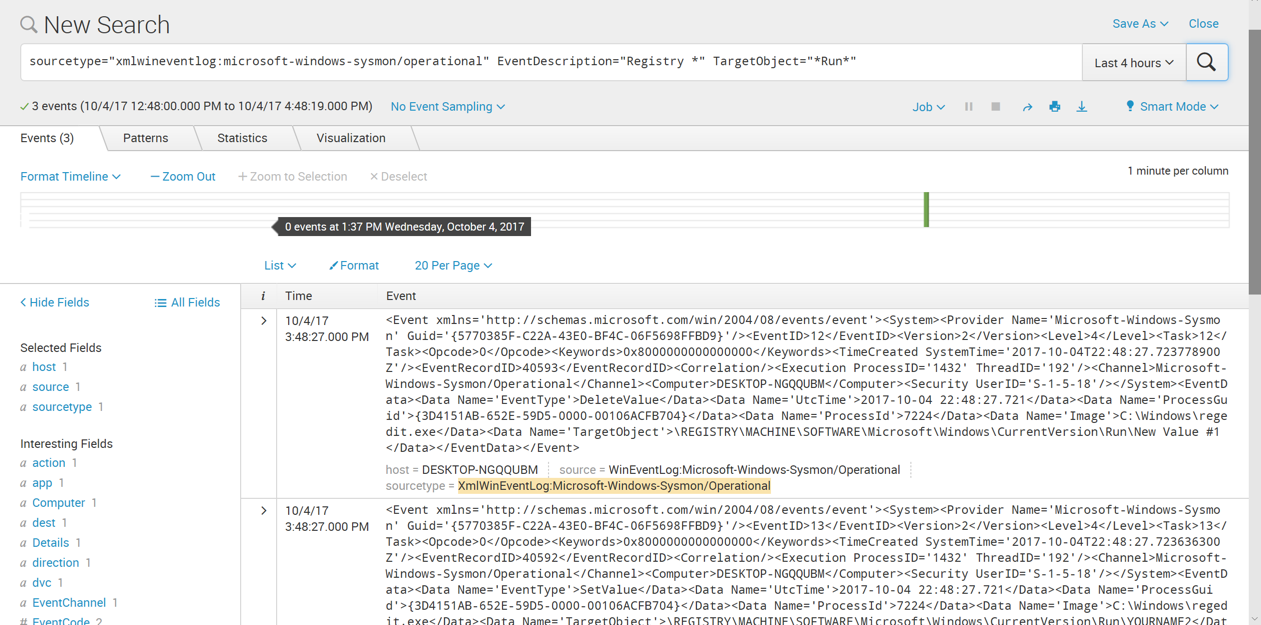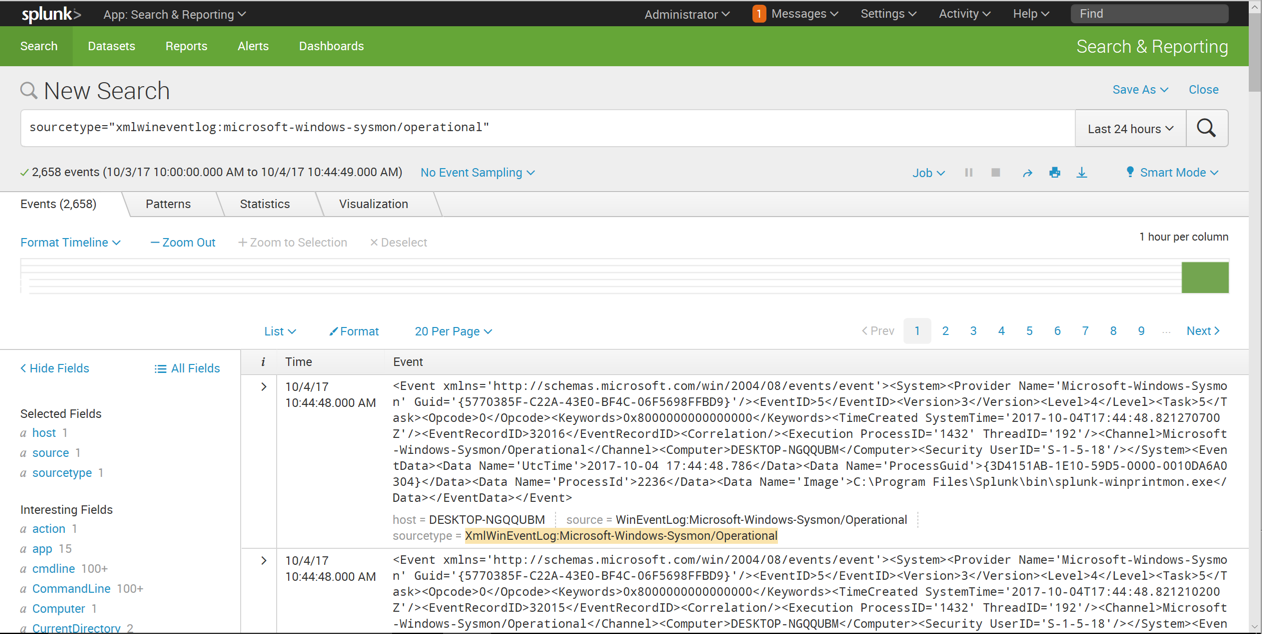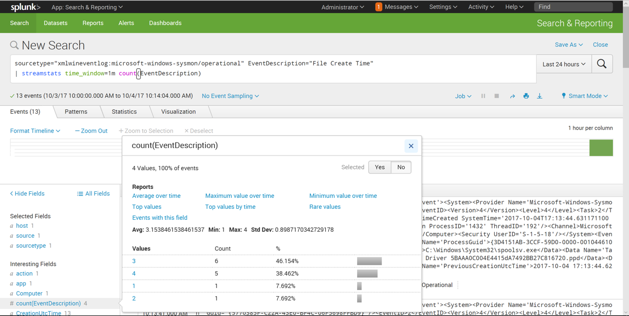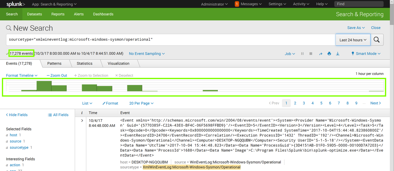 Notice the message outlined in green in the image above, saying "100% of events". This means that every Sysmon event contains this field.