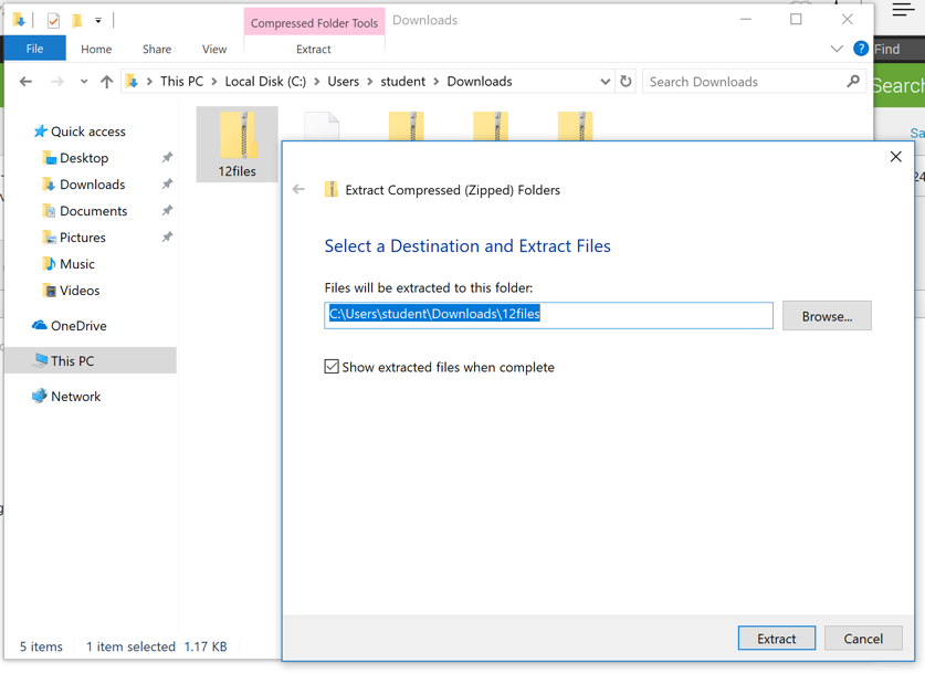 Right-click 12files and click "Extract All...". Click Extract, as shown below.