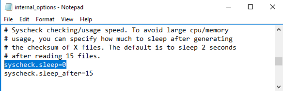 Change syscheck_sleep from its default value of 2 to 0, as shown below.