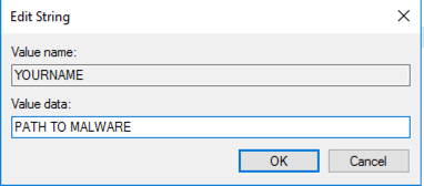 Double-click the YOURNAME value. Enter some text into the "Value data:" box, as shown below.