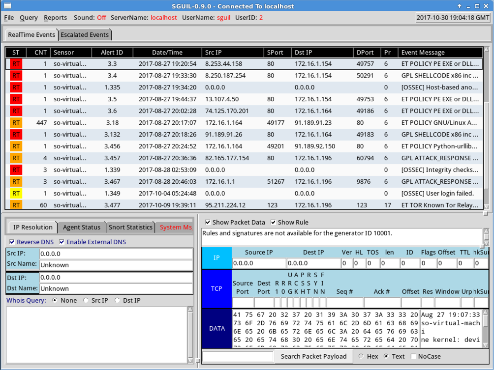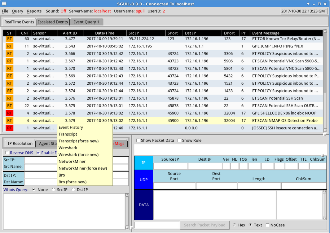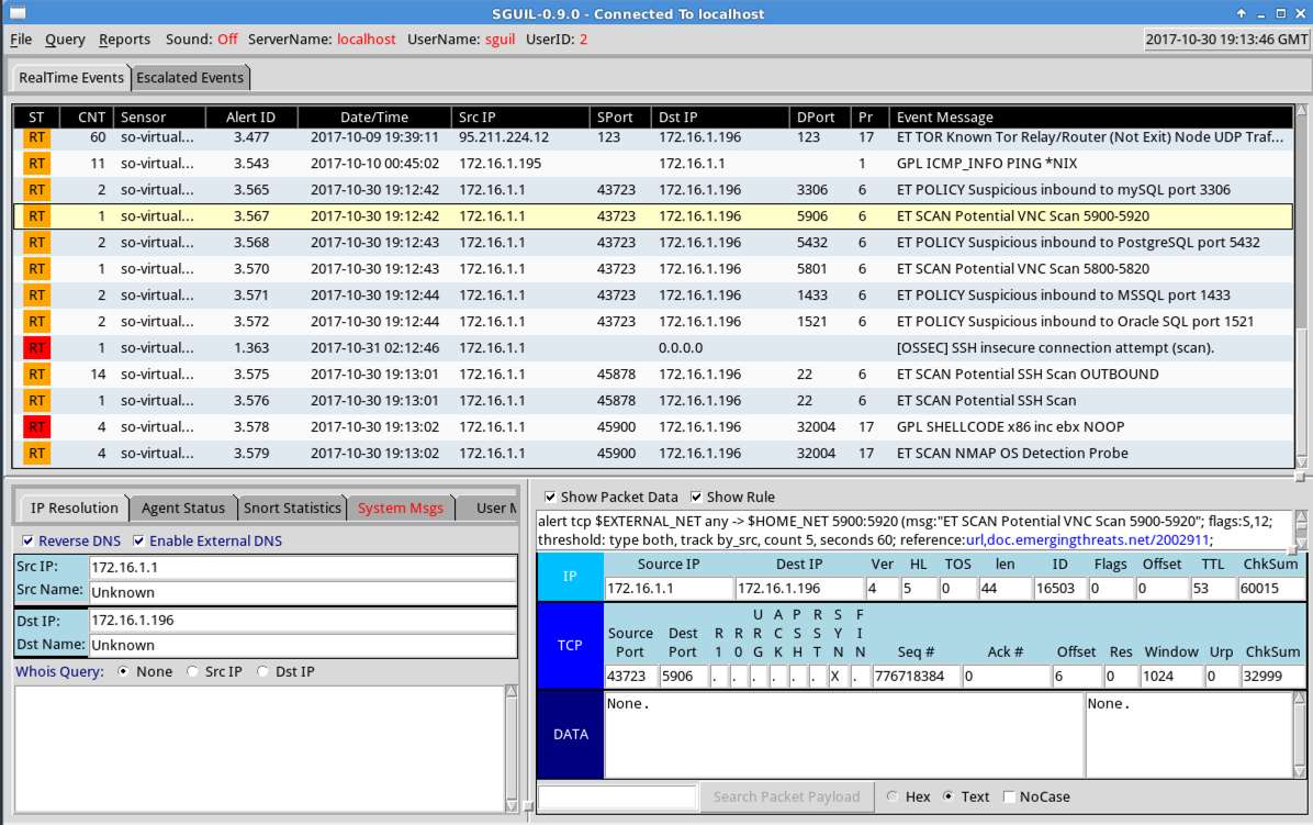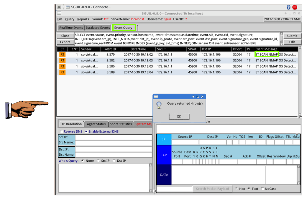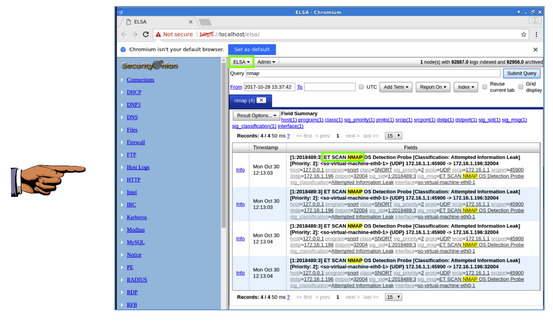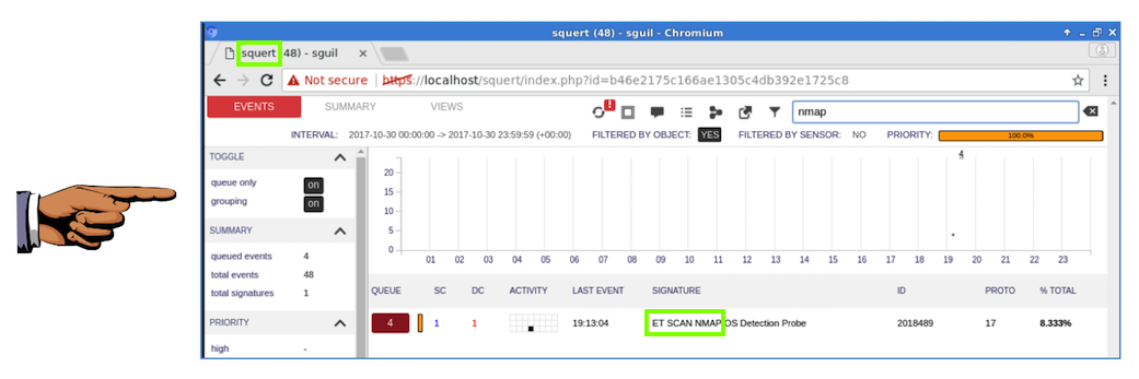 To see alerts, we'll perform a simple, harmless attack: an Nmap scan.