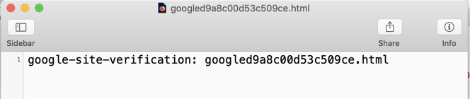 Do not click Verify yet. Download and open the HTML verification file. It contains a verification string, as shown below.