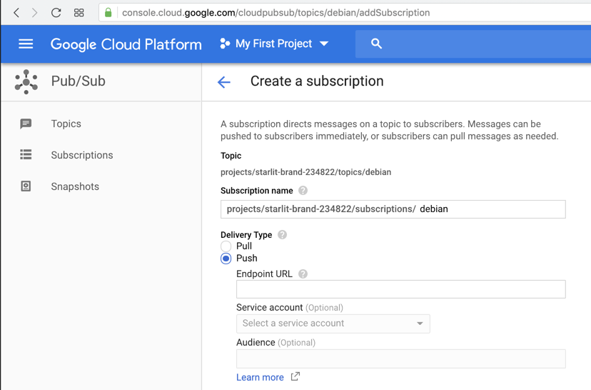 In the Google Cloud Platform page, paste in the URL, as shown below.
