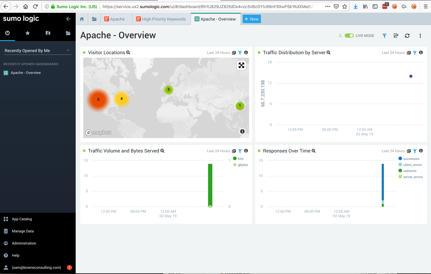 Click Apache to expand it, revealing several prepared searches, as shown below.