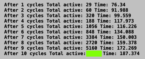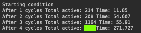After 4 cycles Total active: 188 Time: 79.801