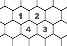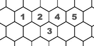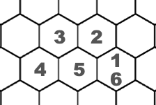 For example, esenee identifies the tile you land on if you start at the reference tile and then move one tile east, one tile southeast, one tile northeast, and one tile east, as shown below. "1" marks the reference tile, and the numbers mark the tiles in the order they are visited, ending with tile "5".
