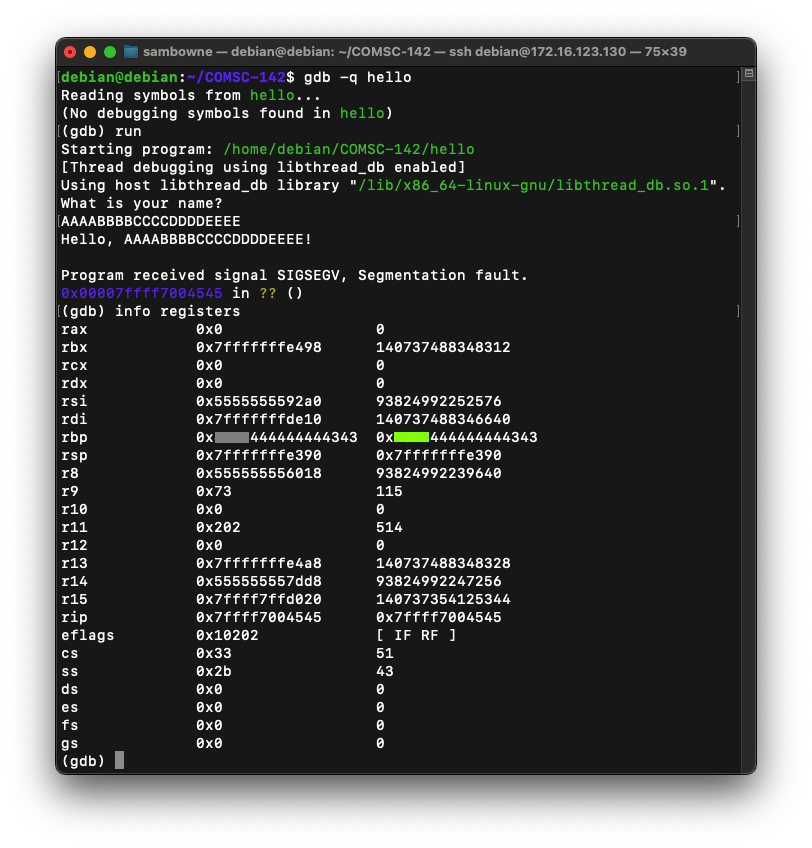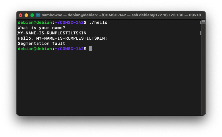 MY-NAME-IS-RUMPLESTILTSKINYou see a "Segmentation fault" message, as shown below.