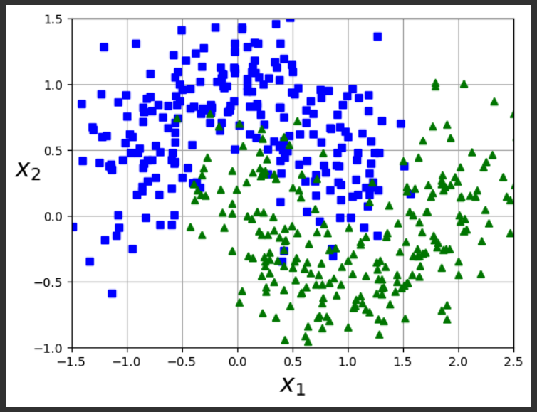 X, y = make_moons(n_samples=500, noise=0.30, random_state=42)