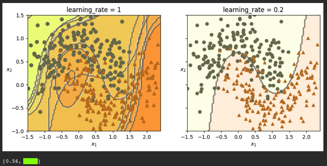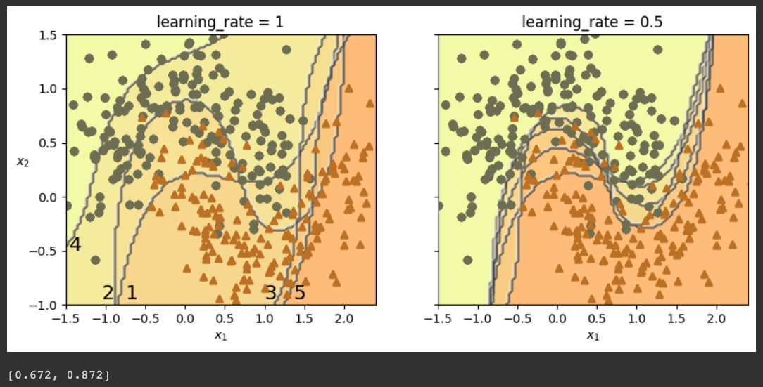 for subplot, learning_rate in ((0, 1), (1, 0.5)):