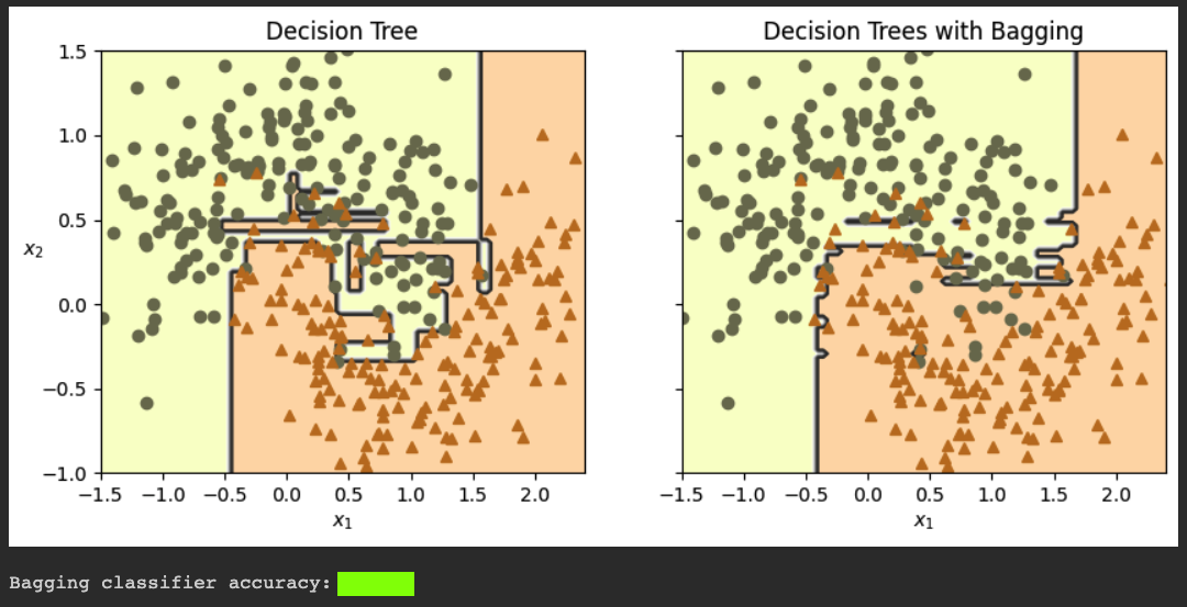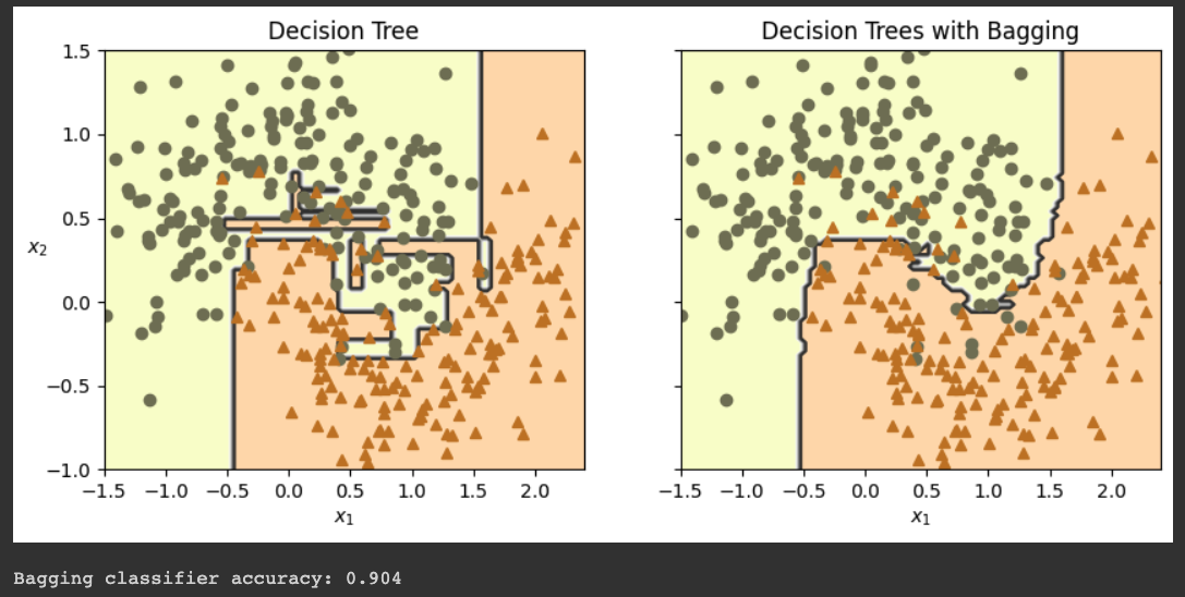 bag_clf = BaggingClassifier(DecisionTreeClassifier(), n_estimators=500,