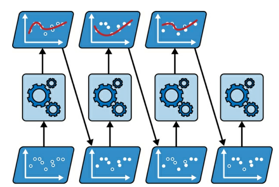The algorithm increases the weight of instances that were incorrectly predicted by the previous predictor, as shown below.