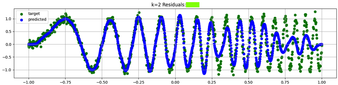 torch.manual_seed(0) fn = lambda x: torch.sin(torch.pi * (x+1)* 8)*(x+1) + 0.1 * torch.randn(x.shape)The flag is covered by a green rectangle in the image below.