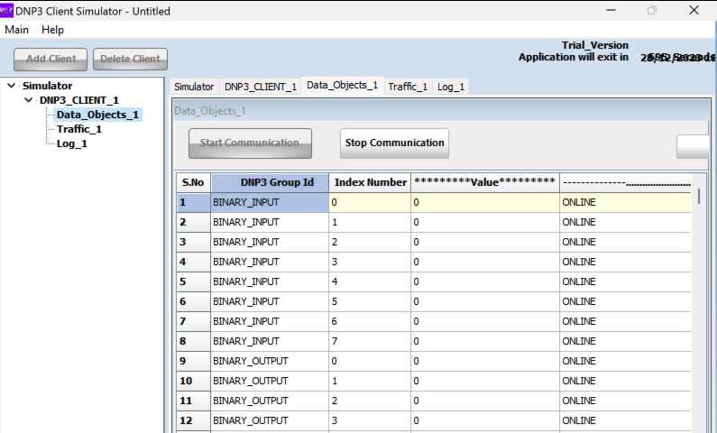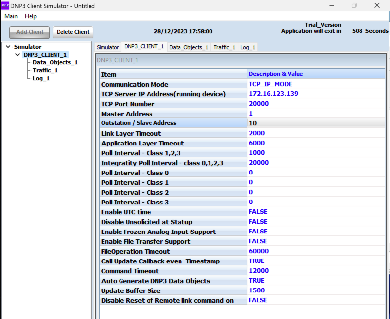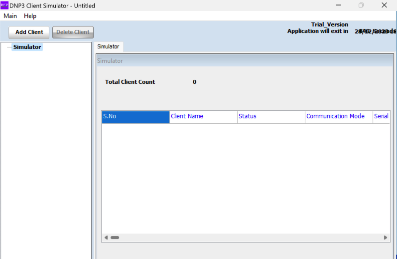 "DNP Client Simulator" opens, as shown below.