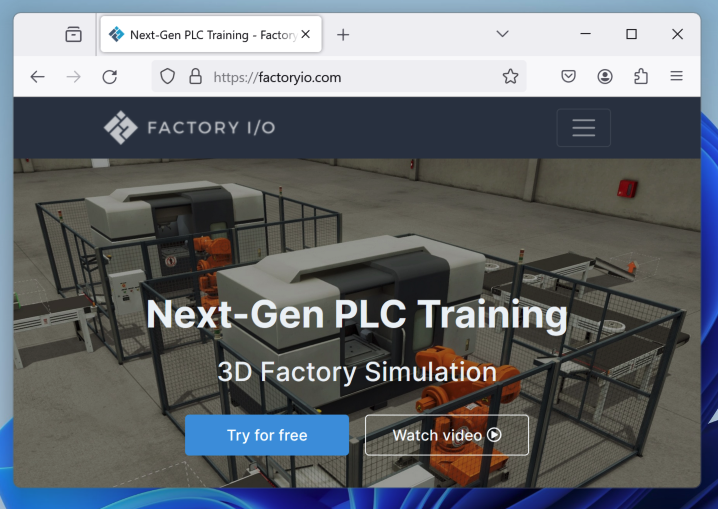 https://factoryio.com//Click the "Try for free" button, as shown below.