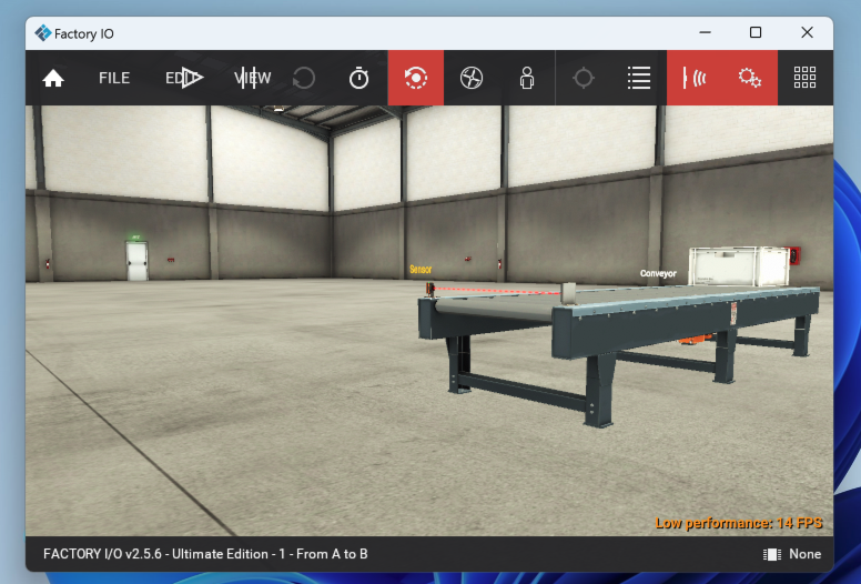 If the letters are too small to read, close FactoryIO, right-click its shortcut on your desktop, and click Properties. On the Compatibility tab, click the "Change high DPI settings" button. Try the options. On my system, the best choice was "High DPI scaling override" with scaling performed by "System".