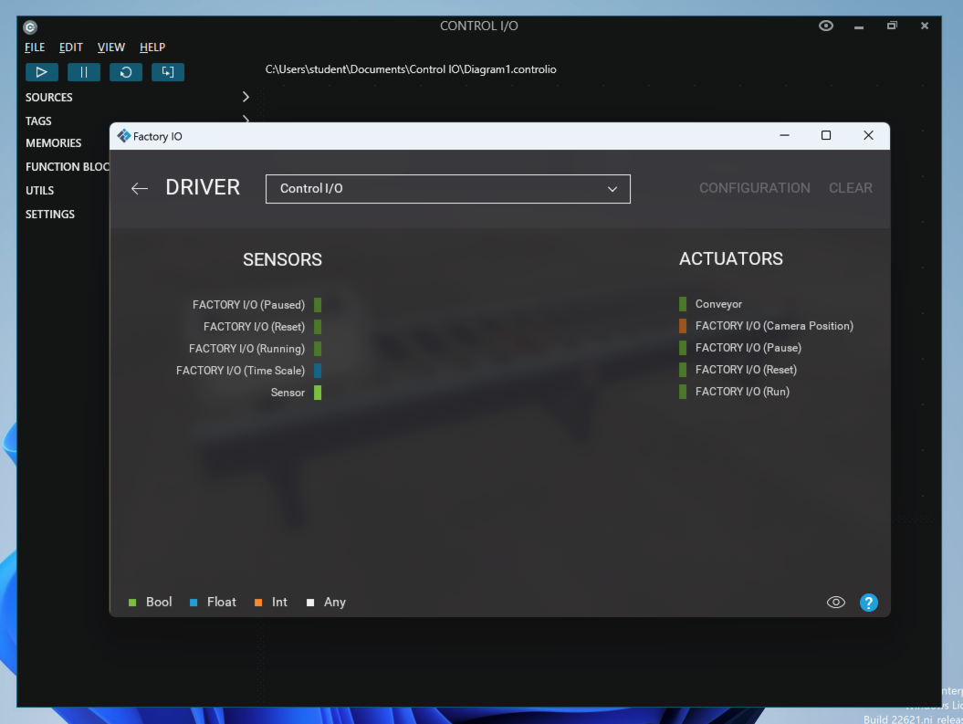 In the DRIVER list, select "CONTROL I/O", as shown below.