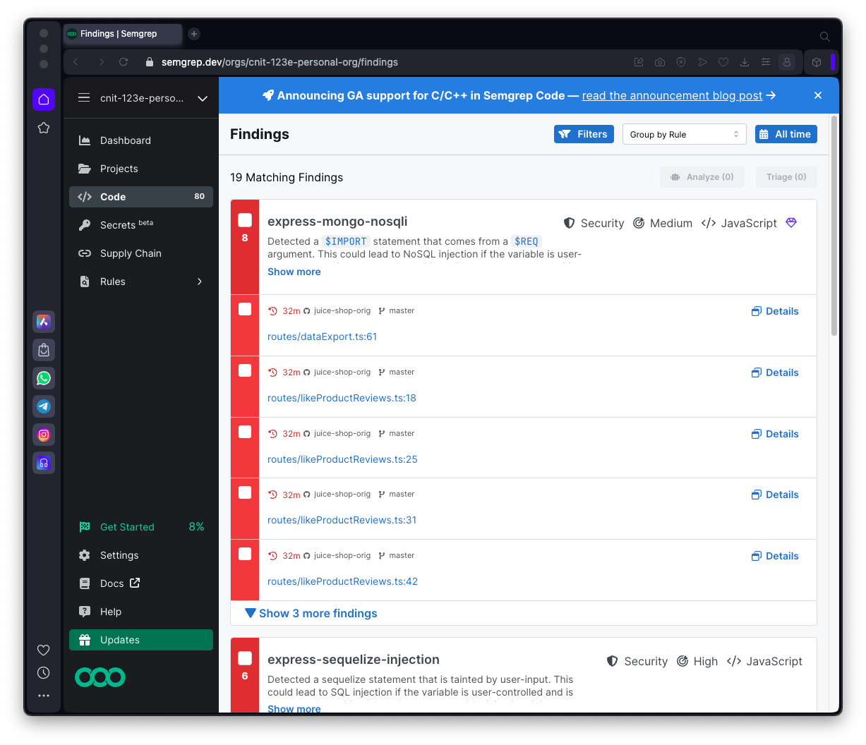 SEMGREP_APP_TOKEN=1bca664ffbcccccccccccccccccccccccccccc6aceba semgrep login