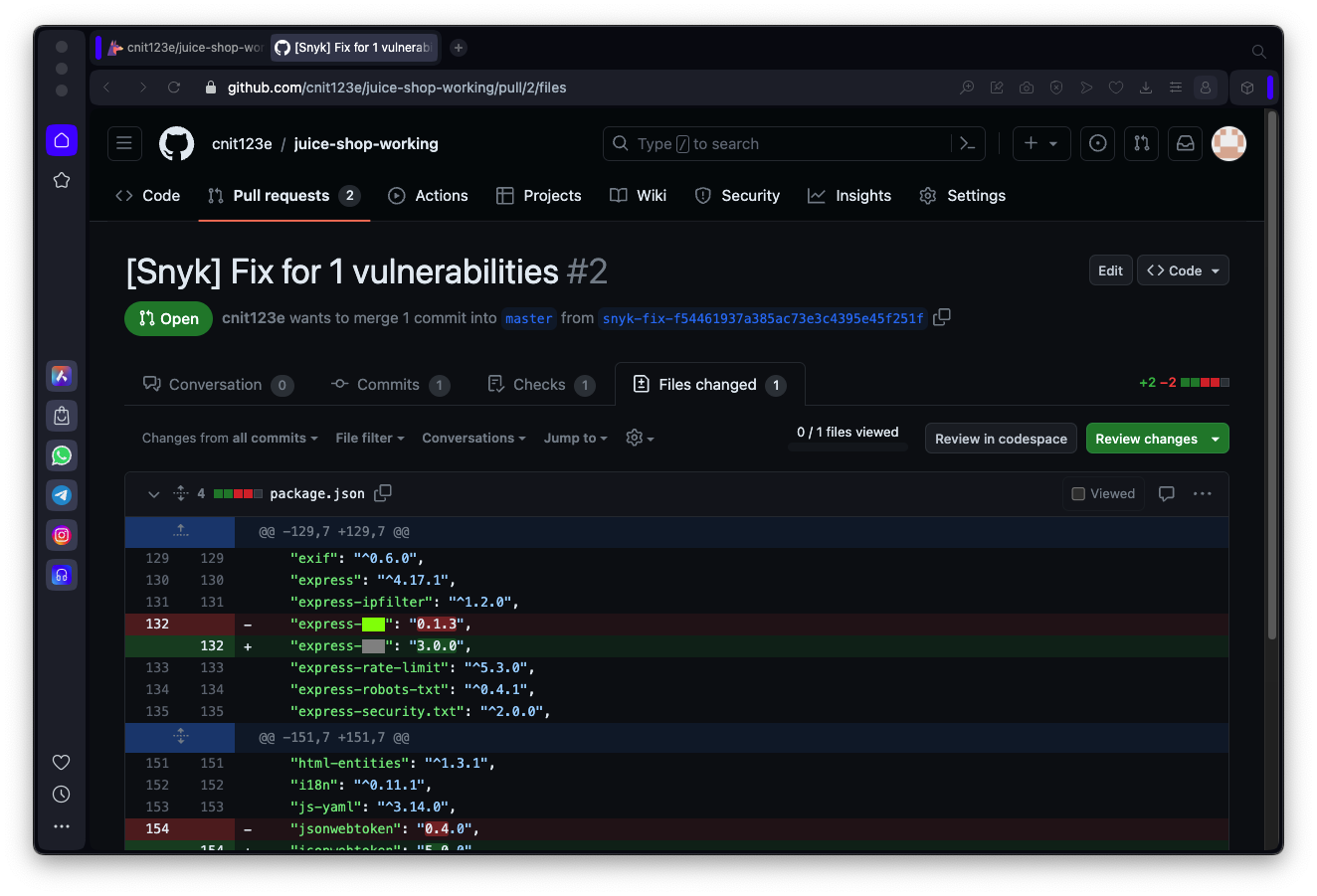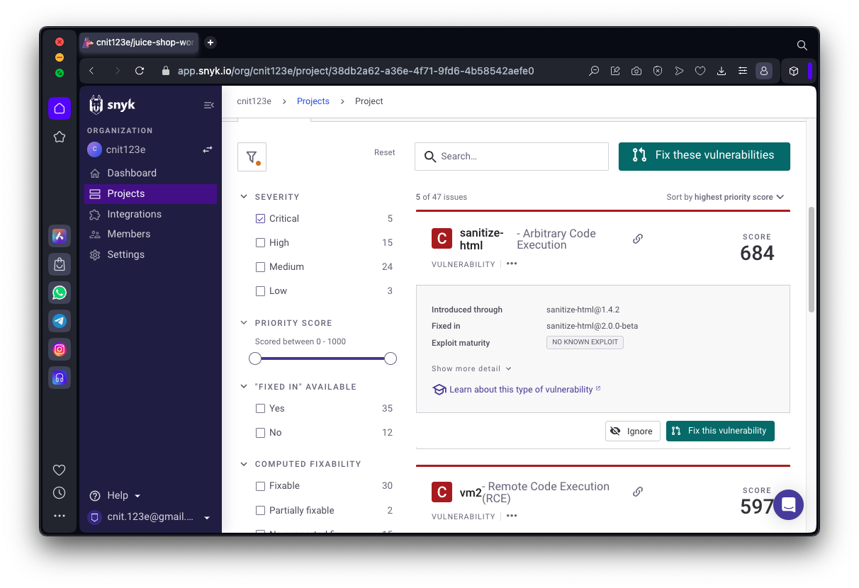 There are 5 critical vulnerabilities in "package.json", as shown below.