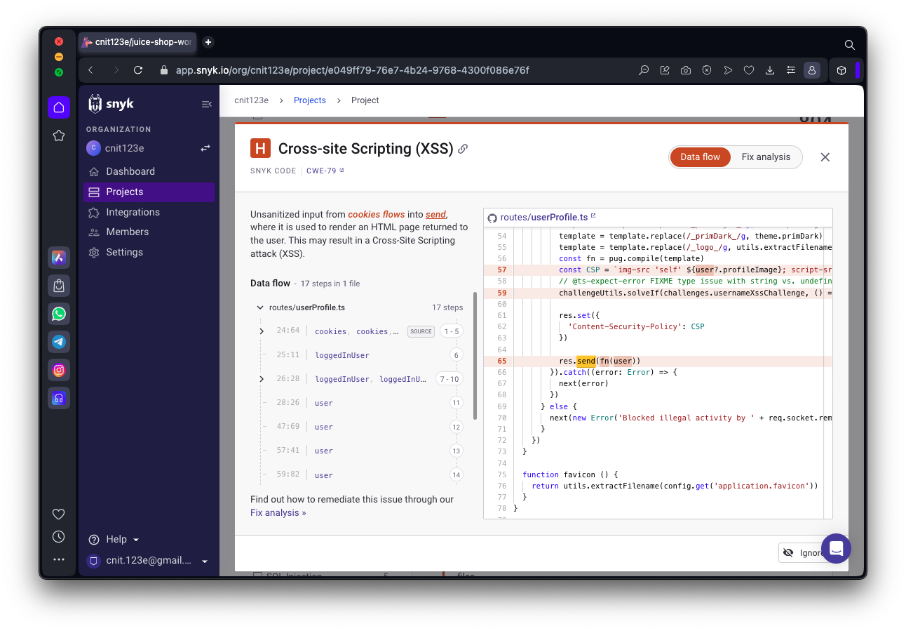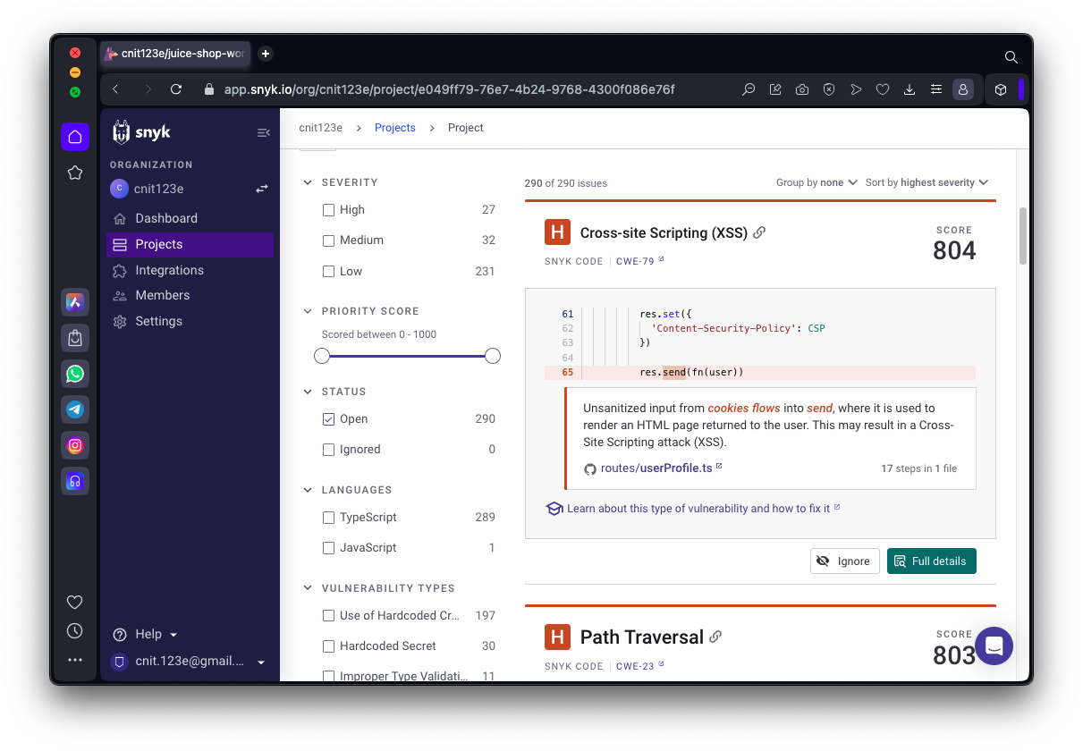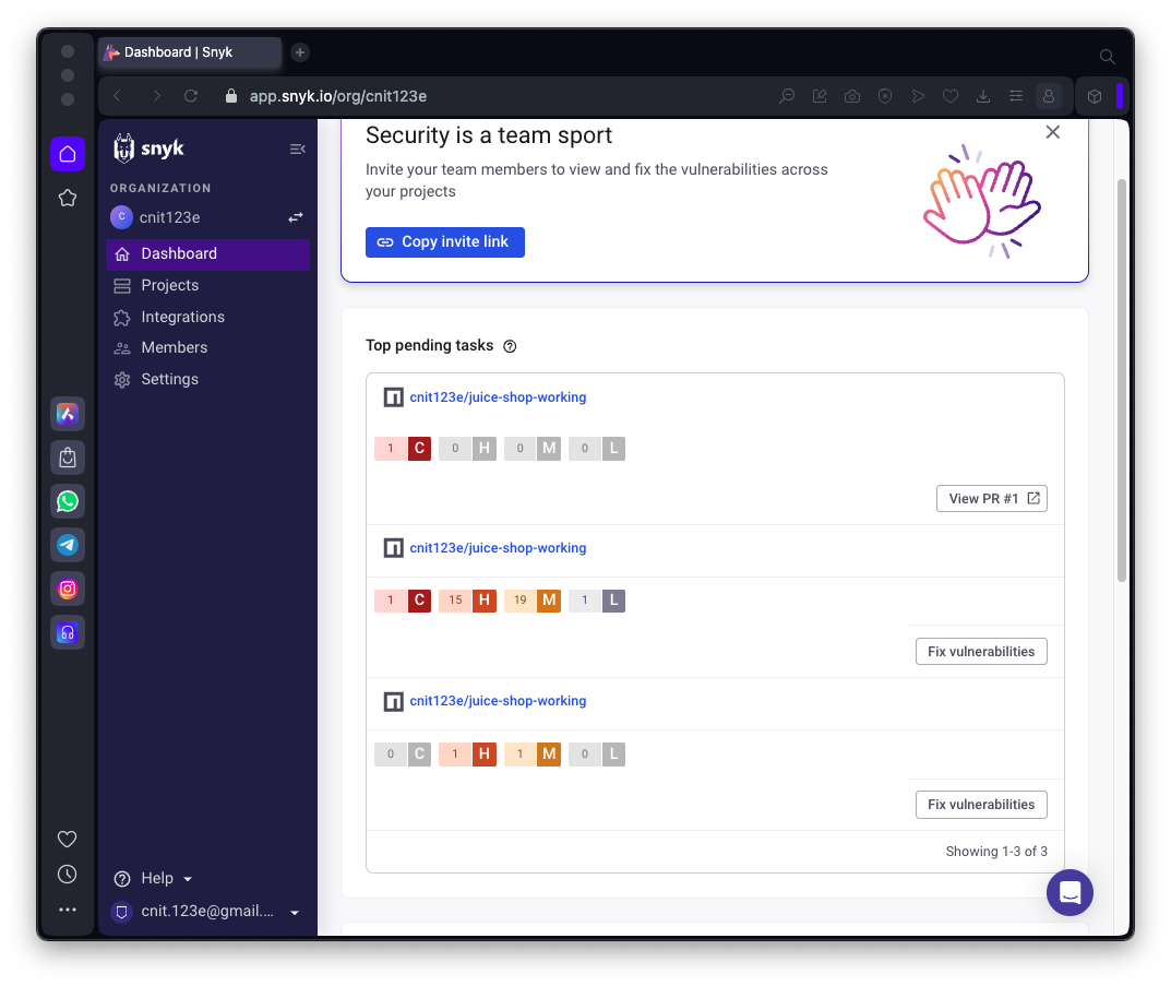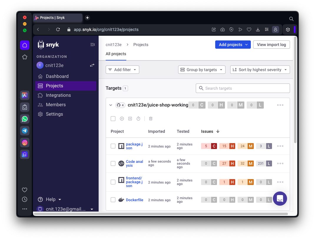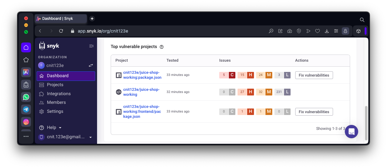 Click the right-arrow next to "juice-shop-working" to see the results.