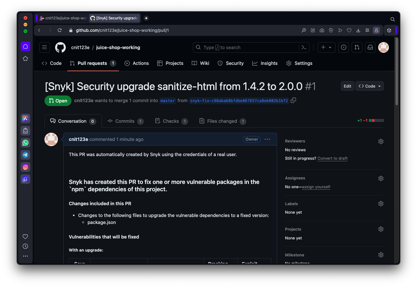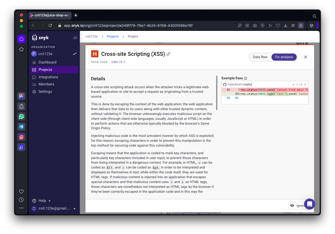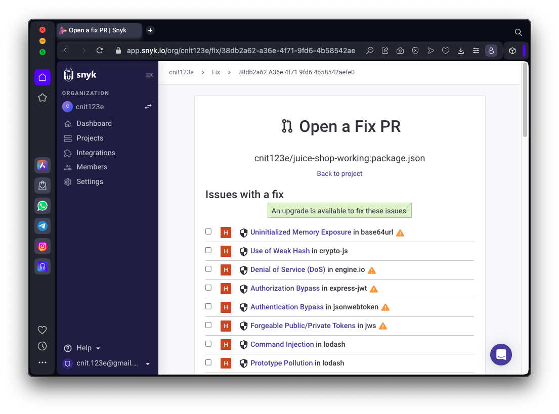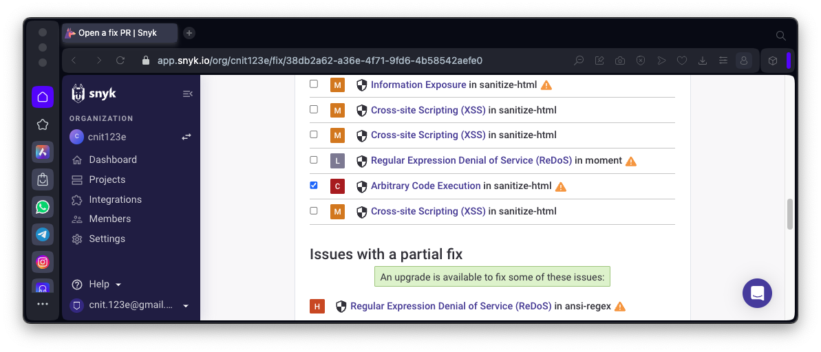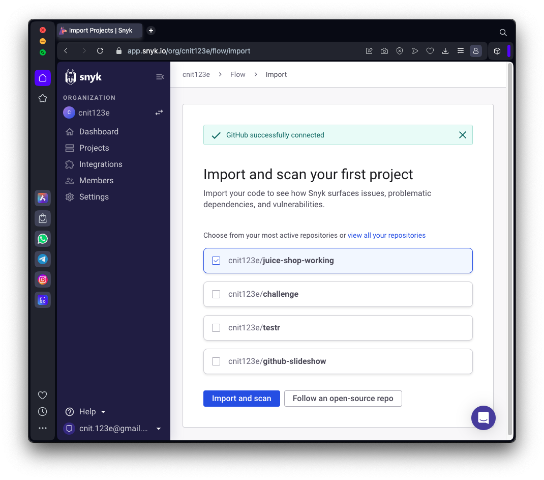 If a "Welcome to Snyk" bos pops up, click the "No, not right now" button.