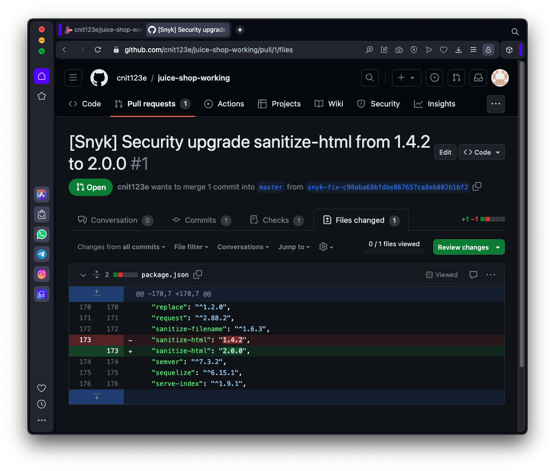 Click the three dots after "fix: package.json to reduce vulnerabilities".