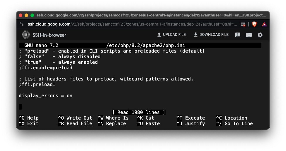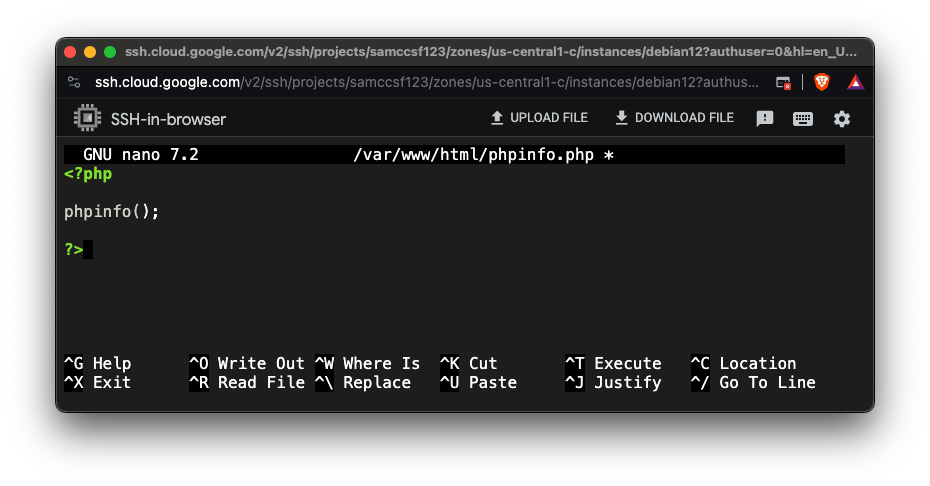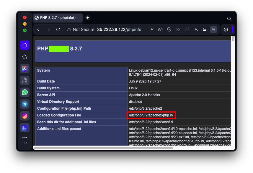 In a Web browser, open this URL, replacing the IP address with the external IP of your server:http://35.222.29.122/phpinfo.phpThe flag is covered by a green rectangle in the image below.