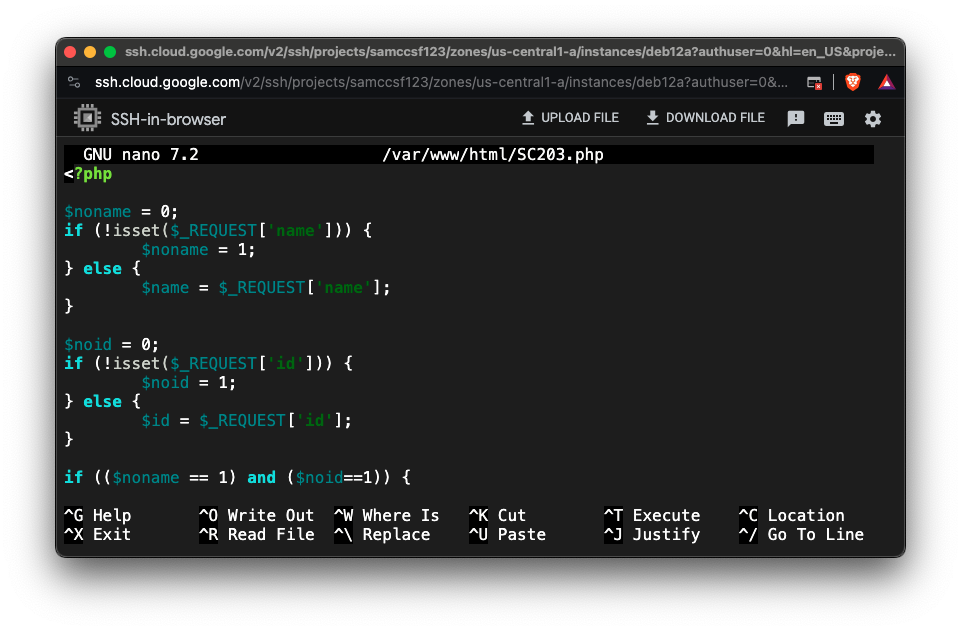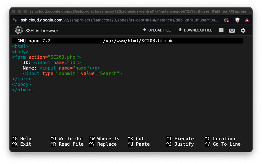 http://35.222.29.122/SC203.htmEnter this ID into the form: